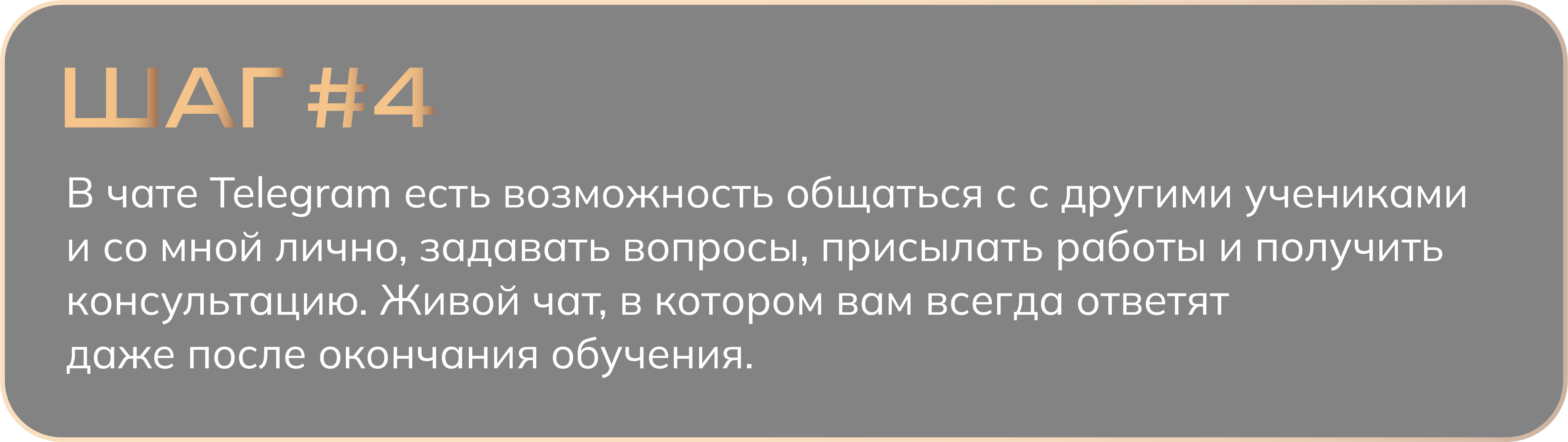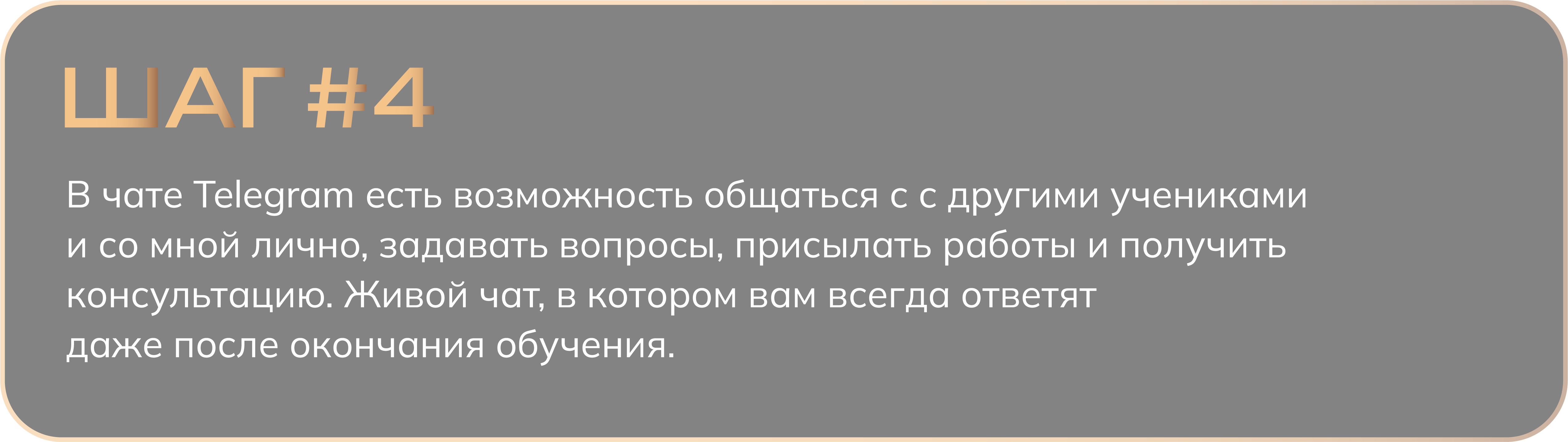 с моими учениками прошлых потоков, где всегда сможешь задать любой вопрос, обменяться опытом, получить поддержку, помощь и мотивацию от коллег и бессрочную онлайн поддержку от меня лично